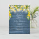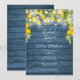 Com luzes de corda bonitas e verde limão em um fundo de madeira azul rústico, este convite de chá de noiva botânico elegante ou de casal pode ser personalizado com as informações do seu evento especial. Criado por Thisisnotme©