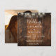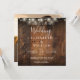 Este convite de casamento com luzes de corda de madeira de celeiro rústico pode ser personalizado com suas informações em tipografia moderna e foto no verso. Criado por Thisisnotme©