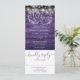 Um convite de casamento tudo-em-um com lindas luzes de corda e tipografia elegante em um fundo de madeira roxa rústica. O convite inclui um cartão de RSVP que pode ser destacado e detalhes das informações dos convidados. Criado por Thisisnotme©