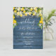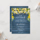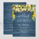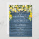 Com belas luzes de corda, limões, flores e folhagens sobre um fundo de painéis de madeira rústica azul, este convite de casamento elegante pode ser personalizado com as informações do seu evento especial. Criado por Thisisnotme©