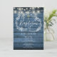 Convite Luzes de Corda de Madeira Rústica Azul para Batism