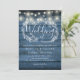 Convite Luzes de Corda de Madeira Rústica Azul Tudo Em Um