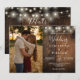 Este convite de casamento com luzes de corda de madeira de celeiro rústico pode ser personalizado com suas informações em tipografia elegante, uma foto especial e o código QR do seu registro no verso. Projetado por Thisisnotme©