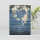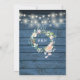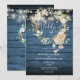 Com uma delicada guirlanda de flores de aquarela e luzes de corda bonitas num fundo de madeira rústica azul, este convite de casamento pode ser personalizado com as informações do seu dia de casamento. O verso apresenta uma guirlanda floral correspondente que enquadra as iniciais do seu monograma em texto branco elegante num fundo de madeira rústica. Concebido por Thisisnotme©