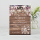 Com luzes de corda bonitas, jarras de pedra e buquês de flores silvestres em um fundo de madeira rústica. Este convite de casamento elegante pode ser personalizado com as informações do seu dia especial de casamento. Criado por Thisisnotme©