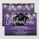 Com luzes de corda e painéis de madeira rústica roxa, este convite de festa de formatura elegante pode ser personalizado com os detalhes da sua celebração. Criado por Thisisnotme©