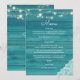 Menu de recepção de casamento com luzes de corda de renda de madeira azul. Celebre seu casamento na recepção com estilo e charme com este menu de madeira falsa. Personalize com as opções do seu prato principal.
