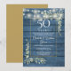 Com luzes de cordão bonitas e delicada folhagem de jardim country em aquarela em um fundo de madeira rústica azul, este convite de aniversário elegante pode ser personalizado com as informações da sua celebração de 50 anos de aniversário especial, com um fundo dourado no verso. Criado por Thisisnotme©