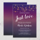 Este convite de festa de elopamento lindo e ousado será a maneira perfeita de convidar seus amigos e familiares para uma festa de recepção! Este design apresenta um fundo roxo, luzes de corda elegantes e texto branco em fontes manuscritas e em blocos. Faça uma declaração com este convite!