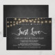 Nada de Luxo, Apenas Amor de festa, Anúncio de Casamento Fuga / Convite, em quadro de giz rústico moderno, design de Luzes de Corda. Isso é perfeito para o seu casamento e festa de celebração pós-casamento. Adicione seus detalhes na fonte / letra correspondente.
