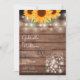 Um convite de casamento rústico elegante com lindos girassóis, luzes de corda e potes de pedra. Os nomes do casal feliz estão escritos em uma fonte elegante acima dos detalhes especiais do casamento em um fundo de madeira rústica. O verso apresenta as iniciais do seu monograma dentro de um girassol correspondente. Criado por Thisisnotme©