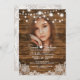 Lindo design rústico com cordas de luzes brilhantes sobre madeira e adoráveis acentos de canto de renda falsa para este convite de festa de modelo de foto único