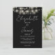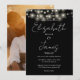 Este convite de casamento com luzes de corda preto e branco e letreiro elegante pode ser personalizado com suas informações em tipografia chic e foto especial no verso. Criado por Thisisnotme©