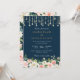 Luzes de Corda Rosa Floral Navy Convite de Casamento Escuro Elegante