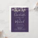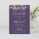 Com luzes de corda bonitas e nomes de estilo característico, este convite de casamento roxo elegante pode ser personalizado com todas as informações especiais do seu casamento na frente, detalhes do seu site de casamento e seu código QR no verso. Projetado por Thisisnotme©