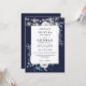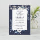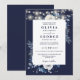 Este convite de casamento floral elegante e moderno com luzes de corda rústicas azul marinho pode ser personalizado com suas informações em tipografia chic. Criado por Thisisnotme©