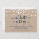 Convite Luzes de Corda Rústicas, Azul Navy Kraft, Casament