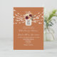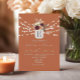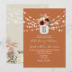Convide seus convidados para uma ocasião verdadeiramente especial com nosso convite de casamento formal elegante, abraçando o charme rústico do campo em tons de laranja rico. Adornado com um monograma e delicadas flores de água-marinha burgundy aninhadas em jarros de mason, complementado pelo brilho suave de luzes de corda e finalizado com caligrafia trendy. Ele prepara o cenário para uma celebração inesquecível repleta de calor e amor.