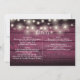 Um convite de casamento rústico com lindas luzes de corda e uma delicada guirlanda floral rústica desenhada à mão com folhagem botânica em tipografia estilosa sobre um fundo de madeira vermelha borgonha rústica. Personalize com todas as informações especiais do seu dia de casamento no verso, incluindo seu RSVP, acomodação e detalhes adicionais. Criado por Thisisnotme