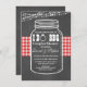 Um design de CHURRASCO I D de tendência para o casal/convites de chá de panela envolvidos. Ele apresenta um fundo de quadro com luzes de cordas e um pote de pedreiro branco. Use a ferramenta Personalizar para alterar o texto de acordo com a sua parte. Seria um convite perfeito para o seu quintal ou chá de jardim. Para encontrar outros itens que correspondam a este design, por favor, verifique a coleção "I DO CHURRASCO Chalkboard/Barn/Mason Jar and Gingham".