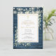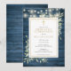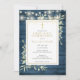 Com belas luzes de cordão e delicadas folhas de folhagem em aquarela sobre um fundo de madeira rústica azul, e um elegante crucifixo dourado, este convite chic para a primeira comunhão pode ser personalizado com suas informações especiais. Criado por Thisisnotme©