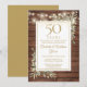 Com luzes de corda bonitas e folhagem de jardim campestre em aquarela delicada em um fundo de madeira rústica, este convite de aniversário elegante pode ser personalizado com as informações da sua celebração especial de 50 anos de aniversário, com um fundo dourado no verso. Projetado por Thisisnotme©