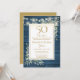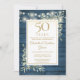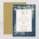 Com luzes de cordão bonitas e delicada folhagem de jardim country em aquarela em um fundo de madeira rústica azul, este convite de aniversário elegante pode ser personalizado com as informações da sua celebração de 50 anos de aniversário especial, com um fundo dourado no verso. Criado por Thisisnotme©