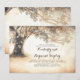 Convite de aniversário de casamento rústico vintage apresenta velho coração esculpido em carvalho e cordão de luzes.