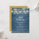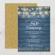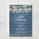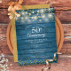 Com luzes de natal e corações dourados delicados num fundo de madeira rústica azul. Personalize com as informações do seu aniversário de casamento dourado de cinquenta anos em letras elegantes. Concebido por Thisisnotme©