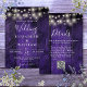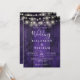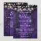 Este convite de casamento com luzes de Natal em madeira de celeiro rústico roxo pode ser personalizado com suas informações em tipografia moderna e código QR do site de casamento no verso. Projetado por Thisisnotme©