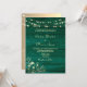 Este convite de casamento romântico na cor esmeralda apresenta uma rica textura de madeira combinada com luzes quentes de corda e delicados acentos florais vintage. O tom esmeralda profundo cria uma atmosfera elegante e sombria, enquanto as luzes cintilantes adicionam calor e charme.