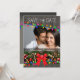 Este cartão de Save the Date mostra uma sequência de luzes coloridas de Natal e um ramo de sempre-verde, canudos de doces e enfeites sobre painéis de madeira. O design apresenta uma abertura recortada para inserir sua própria foto com informações do anúncio de casamento no verso. Use o botão "Personalizar" para personalizar com seu próprio texto e imagem. Cartões de Natal de foto plana, adesivos, etiquetas de endereço, selos postais, enfeites e cartões de Natal dobrados também disponíveis. Para ajuda ou perguntas, envie um e-mail para: cheryl@cheryldanielsart.com/contact. Design por Cheryl Daniels © 2013.