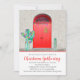 Este convite de festas estilo sudoeste tem duas portas vermelhas com uma janela de paládio no topo. Luzes de Natal festivas adoram cacto com biscoito de gengibre na porta direita. Personalize o texto no ou clique em personalizar para selecionar um estilo de fonte, tamanho e cor desejados.