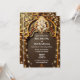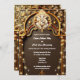 Um belo e rico pano de fundo marrom de chocolate arma um pilar de ouro e arco no qual pérolas de bronze e ouro repousam cercadas por espirais decorativas de ouros e floresces nos quais luzes brilhantes de cordas falsas aparecem no lado esquerdo e direito deste convite de casamento. Um marfim ousado e ouro falso Ganesha, o Deus da sabedoria, os começos e o removedor de obstáculos estão no topo da arca. Este design inspirado Hindi tem modelos brancos para seu texto personalizado e o verso tem um modelo para mais detalhes para convidados e familiares que podem ser removidos, se não necessário. Os tons quentes e ricos dão a este design uma sensação luxuosa, elegante e supermercado. Este convite é ideal para celebrar qualquer cerimônia hindu ou qualquer celebração ou casamento de etnia asiática.