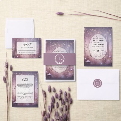 Convite Luzes Mágicas de Fada de Lavanda para Casamento
