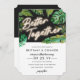 Este divertido e moderno convite para o casamento na ilha apresenta luzes de neon que leem, "Melhor Juntos", juntamente com folhas tropicais. A cor de fundo pode ser personalizada, se desejar.