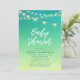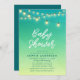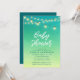 Celebre a futura mamãe com este convite de chá de bebê elegante que apresenta cordões de luzes e as palavras "Chá de Bebê" em escrita moderna contra um fundo de aquarela em gradiente de vidro marinho na frente. O convite tem uma parte de trás de cor azul-turquesa. Confira outros itens correspondentes aqui https://www.zazzle.com/collections/strings_of_lights_watercolor_gradient-119104161608312733?rf=238364477188679314
