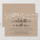 Lindas Luzes Rústicas Modernas de Corda de Fazenda, fonte de letra preta em Fundo Kraft Marrom, Anúncio de Casamento Intimo, cartão de convite (Celebre conosco). Isto é perfeito para o seu casamento e festa de celebração pós-casamento. Adicione seus detalhes na fonte / letra correspondente.