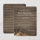 Cartão de "detalhes" com celeiro country retrô, madeira e luzes de cordão cintilantes para complementar nosso convite de casamento em madeira rústica e ferraduras.