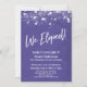 Sobre um fundo roxo que pode ser alterado para qualquer cor de sua preferência, eu coloquei uma textura sutil de papel rústico transparente que adiciona profundidade e interesse ao papel. Em uma fonte moderna e casual de letra manuscrita, eu criei um gráfico para a palavra "We Eloped!". Na mesma fonte distinta, a palavra "Love" aparece no verso. Todo o outro texto é totalmente editável; por favor, sinta-se à vontade para usar os campos do modelo para adicionar seus detalhes e clicar para personalizar ainda mais se precisar redimensionar, reposicionar ou até mesmo alterar esta fonte. A parte superior do design é acentuada com vários gráficos diferentes que retratam uma variedade de estilos de luzes brilhantes cintilantes, adicionando um clima divertido e festivo para sua ocasião especial. Por favor, certifique-se de entrar em contato se tiver solicitações especiais ou precisar de ajuda com a personalização. // 105 //