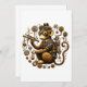 Um macaco de inspiração steampunk vestido com traje mecânico intrincado. O macaco veste óculos, colete e um pequeno chapéu, enquanto segura um complexo dispositivo mecânico parecido com uma arma de raios. Ao redor dele estão engrenagens, canos e outros elementos industriais, criando uma estética steampunk rica e detalhada. Os tons de ouro das partes mecânicas contrastam com o pelo natural, misturando temas orgânicos e mecânicos.