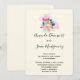 Convite de casamento com uma imagem encantadora. 3 macarons coloridos, rosa, verde e azul com um buquê floral de rosa sofisticada e um toque de aquarela rosa por trás. Delicioso e estiloso também!
