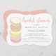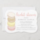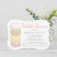 Oh la la! Esses doces convites de chá de panela apresentam uma pilha de macarões franceses deliciosos em tons pastéis de rosa-pincel, amarelo, marfim e bronzeado. Super feminina e perfeita para um chá francês ou parisiense. A placa se reverte para cor-de-rosa pincelado sólido.