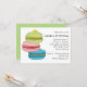 Uma ilustração mista de macarões azuis, verdes e cor-de-rosa, comumente chamados de macarões. Personalize estes convites para uma festa de aniversário. O design é versátil e pode ser personalizado para outras ocasiões, como um bebê ou um chá de panela. A parte traseira é verde, mas você pode alterá-la para outra cor clicando em Personalizá-la.