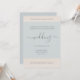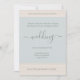 Um moderno design com tiras de grãos de madeira sobre um fundo azul empoeirado. O RSVP correspondente está disponível em: https://www.zazzle.com/elegant_dusty_blue_wood_grain_stripes_wedding_rsvp_invitation-256422272981345702