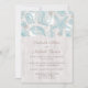 Convites apenas para recepção de casamento com madeira caiada de branco com conchas com um design rústico e elegante de madeira caiada de branco com uma paleta de cores azul e bege, apresentando uma ilustração do contorno de conchas ao longo da parte superior. Os detalhes da sua união e da recepção são impressos personalizados em marrom e bege sobre o fundo de madeira caiada de branco. Estes convites de recepção de casamento com conchas são perfeitos para as celebrações pós-casamento com tema praiano. Cartões de RSVP e outros itens correspondentes estão disponíveis.