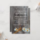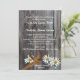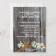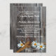 Madeira de celeiro de campo com sapatos de cavalo e margaridas. Convite de casamento não tradicional para o tema do país.