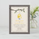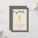 Um convite de casamento ao ar livre, com uma ilustração de uma lata, pode ser preenchido com margaridas e Susanos de olhos pretos pendurados num ramo de árvore com folhas verdes. O fundo na frente e atrás é inspirado na madeira. O recurso principal inspirou o design. Personalize o texto com suas informações.