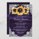 Convite Madeira púrpura e renda Chá de panela de girassol