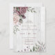 Um elegante design de aquarela de grandes rosas em tons de rosa claro e rosa poeirento sobre um fundo branco de madeira rústica. A parte traseira do cartão tem o mesmo fundo com um pequeno arranjo floral no centro. Você pode personalizar as fontes da maneira que quiser ou adicionar sua própria mensagem especial. Este convite é parte de uma bela suíte de casamento que pode ser totalmente personalizada.